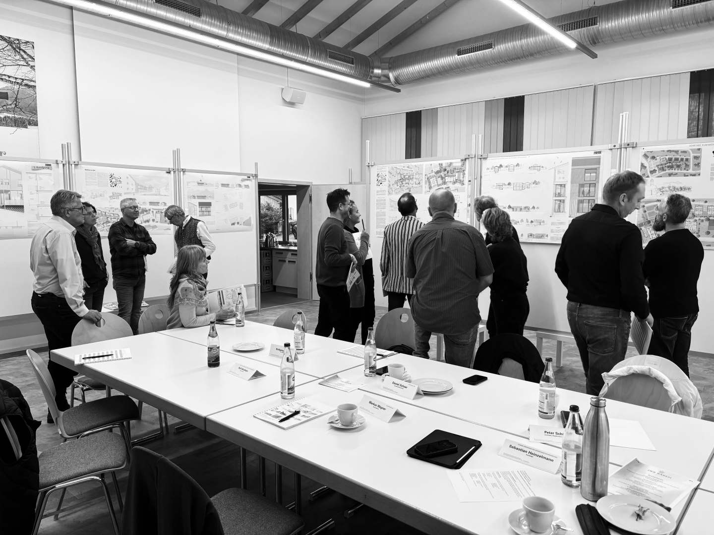 Am Donnerstag, den 23.10.2025, fand im Dorfgemeinschaftshaus in Eisenberg die Preisgerichtssitzung des von Hummel Kraus unter der Projektleitung von Jan Sperber betreuten, nichtoffenen Realisierungswettbewerbs mit Ideenteil „Wohnen in Zell” statt. Insgesamt hatten sich 19 Teilnehmer*innen an dem Wettbewerb beteiligt. Das Wettbewerbsgebiet befindet sich im Ortsteil Zell der im malerischen Allgäu gelegenen Gemeinde Eisenberg. Es besticht durch seine ländliche Atmosphäre und seine traditionelle Bauweise. Gefordert war ein städtebaulicher Entwurf für das gesamte Wettbewerbsgebiet, bestehend aus Realisierungs- und Ideenteil. Für den Realisierungsteil wurde die Planung von kommunalem Wohnungsbau mitsamt Freiflächen und Stellplätzen gefordert. Im Realisierungsteil befindet sich ein ehemaliges Pfarrhaus, das zeitgemäß für den kommunalen Wohnungsbau umgebaut werden soll. Die Entwürfe sollen eine qualitätsvolle, ortsbildverträgliche und abschnittsweise realisierbare dörfliche Innenentwicklung ermöglichen, die kommunalen und vielfältigen Wohnungsbau mit guter Wohnqualität, regionaler Baukultur sowie sozialem Miteinander verbindet. Zudem werden nachhaltige, klimabewusste und flächeneffiziente Lösungen gefordert, die einfache Low-Tech-Strategien, ökologische Freiräume, wirtschaftliche Stellplatzkonzepte und die Einbindung des Pfarrhofs berücksichtigen. Wir gratulieren den Gewinnern Büro BB und Hannes Hörr Landschaftsarchitekt aus Stuttgart.